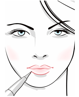 ასიმეტრული ტუჩების შემთხვევაში შესაძლებელია ტუჩის იმ კონტურების გამოკვეთა რომლებიც მინიმუმდე დაიყვანს მათ ვიზუალურ სხვაობას სიმეტრიაში. ამიტომ ჯერ კეთდება: